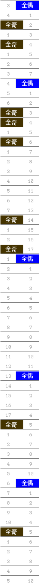 常规走势图 | 奇偶走势 | 大小走势 | 质合走势 | 和(合)值走势 | 012路走势 | 新规则走势 | 试机号合并走势图 | 隔期走势