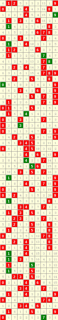 隔10期尾0走势=>常规走势 | 奇偶走势 | 大小走势 | 质合走势 | 和(合)值走势 | 012路走势