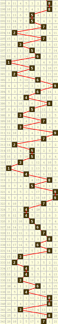 隔10期尾8走势=>常规走势 | 奇偶走势 | 大小走势 | 质合走势 | 和(合)值走势 | 012路走势