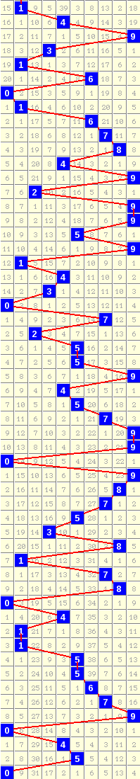 隔10期尾9走势=>常规走势 | 奇偶走势 | 大小走势 | 质合走势 | 和(合)值走势 | 012路走势
