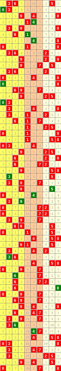 隔10期尾7走势=>常规走势 | 奇偶走势 | 大小走势 | 质合走势 | 和(合)值走势 | 012路走势
