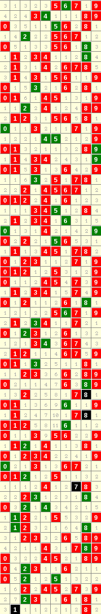隔3期1走势=>常规走势 | 奇偶走势 | 大小走势 | 质合走势 | 和(合)值走势 | 012路走势