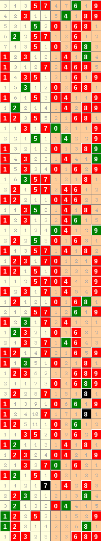 隔10期尾7走势=>常规走势 | 奇偶走势 | 大小走势 | 质合走势 | 和(合)值走势 | 012路走势