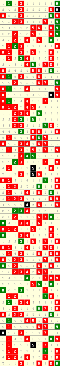隔3期1走势=>常规走势 | 奇偶走势 | 大小走势 | 质合走势 | 和(合)值走势 | 012路走势