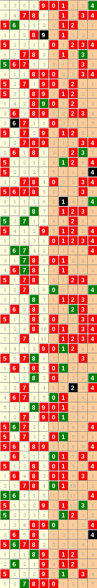 隔10期尾8走势=>常规走势 | 奇偶走势 | 大小走势 | 质合走势 | 和(合)值走势 | 012路走势