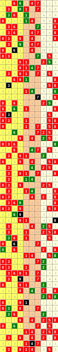 隔10期尾7走势=>常规走势 | 奇偶走势 | 大小走势 | 质合走势 | 和(合)值走势 | 012路走势