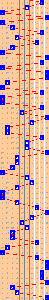 隔10期尾9走势=>常规走势 | 奇偶走势 | 大小走势 | 质合走势 | 和(合)值走势 | 012路走势