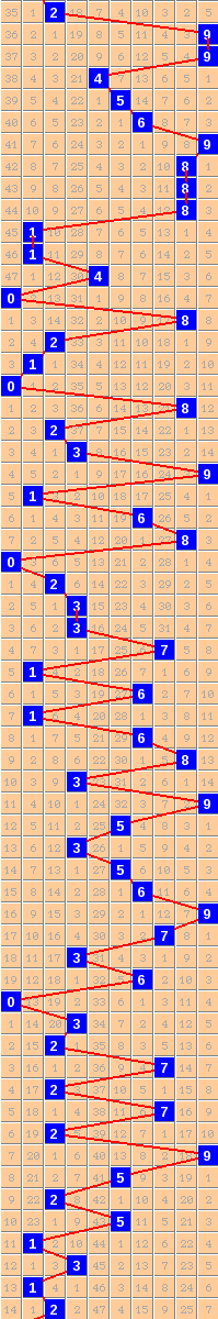 隔10期尾9走势=>常规走势 | 奇偶走势 | 大小走势 | 质合走势 | 和(合)值走势 | 012路走势